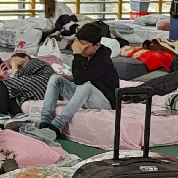 Ich weiss nicht, ob Sie schon einmal längere Zeit mit dem Zug gereist sind, aber es ist schwierig, im Zug zu schlafen, während alle anderen dort stehen. Ganz normale Dinge sind für einen Flüchtling schwierig. Sie haben Ihre Kinder dabei, die traurig sind, dass ihr Vater weg ist. Sie machen sich Sorgen darüber, was mit ihrem Vater passiert ist. Aber Ihr Kleiner muss auf die Toilette, dann müssen Sie versuchen zu schlafen, aber Sie sind in einem Zug mit Hunderten von anderen Menschen in der gleichen Situation eingepfercht.